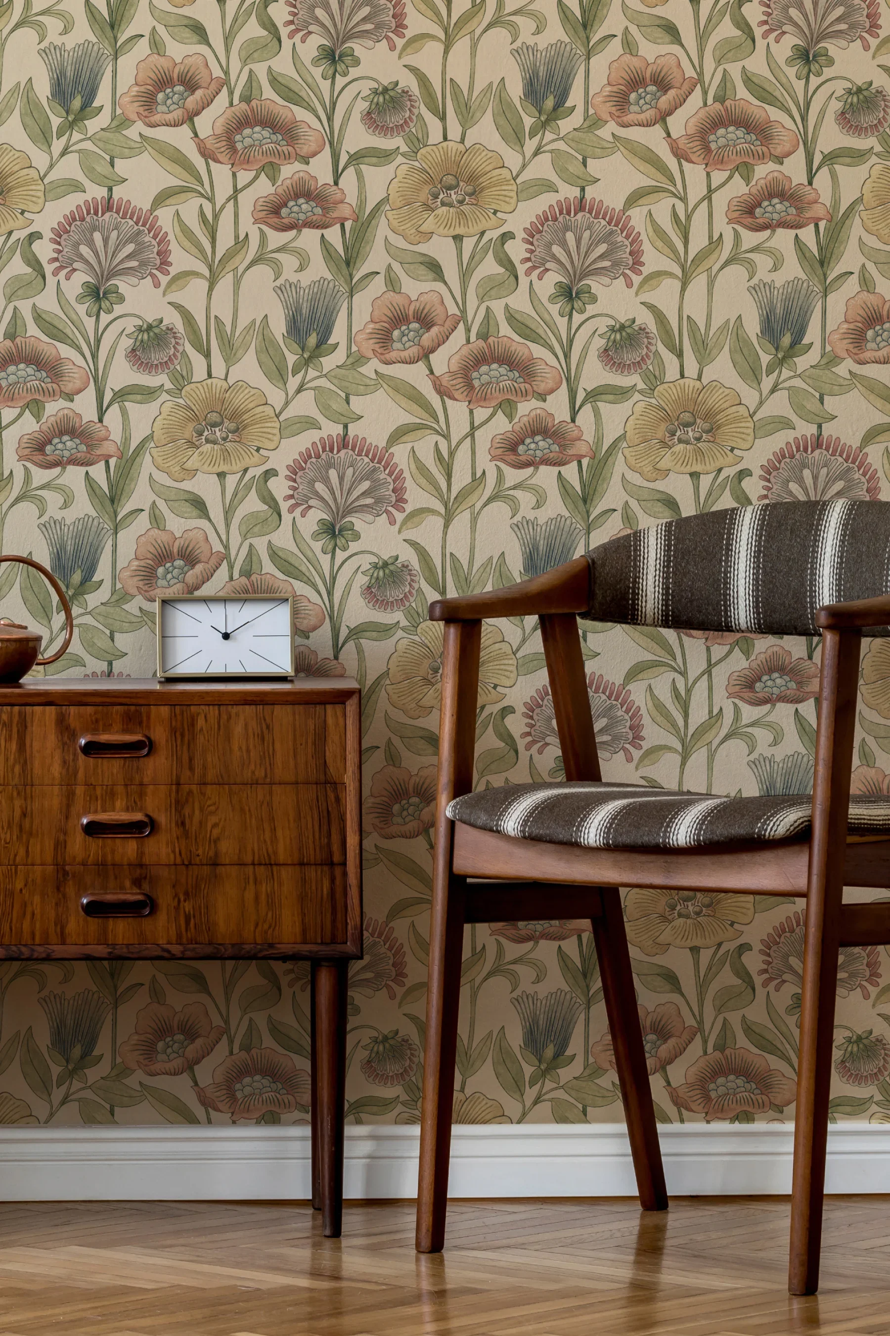 Wallpaper has made its triumphant return into the scope of interior design over the past few years; however, this year it has become more refined. Large florals, murals, textured and botanical design wallpapers like the one pictured are going to be some of the most influential designs this year. These wallpapers are also accented by other 2026 design trends, such as rich jewel tones as seen in the florals above. Wallpaper is a great way to add a pop of art to your space, and these days, you have more options than ever!
